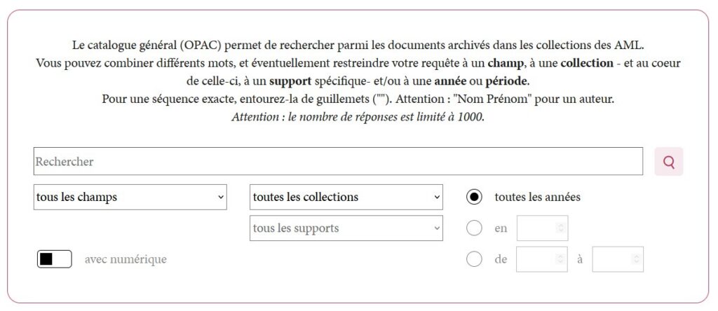 Ces améliorations techniques vous permettront de naviguer avec plus d’efficacité au sein des collections des AML. Bonne découverte !